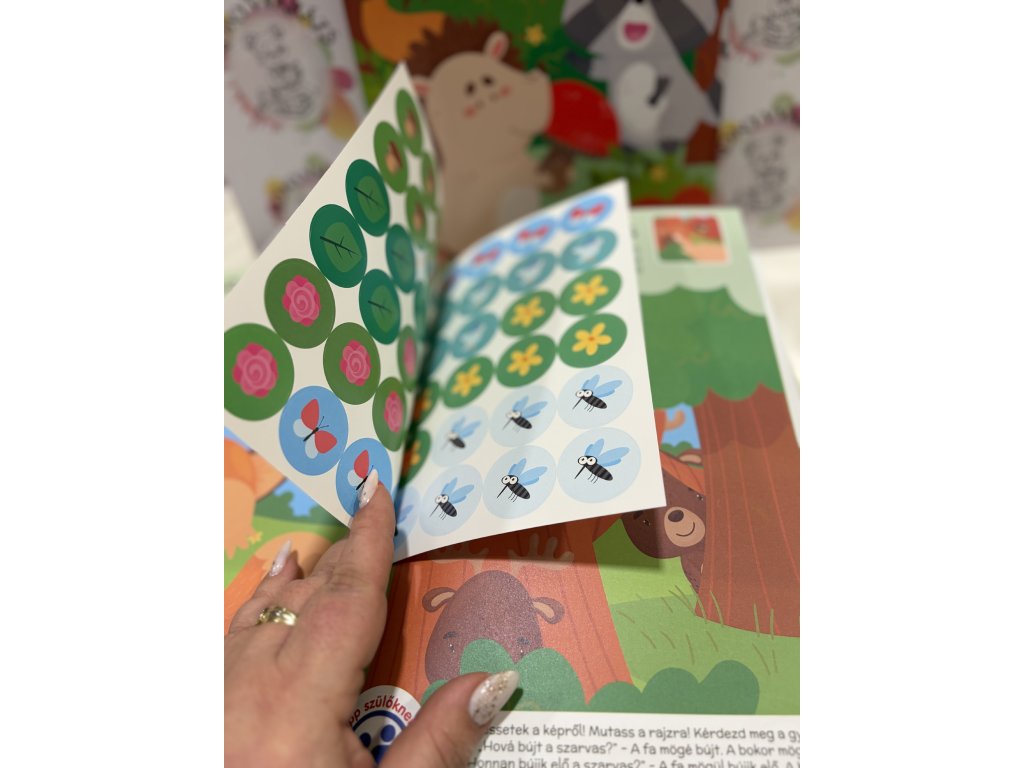 Ebben a szép és színes foglalkoztatóban nagyon egyszerű, de annál vidámabb feladatok várnak a kicsi gyerekekre. A matricákkal, színes ceruzákkal való játék, a "rajzolgatás" öröme már 1.5 éves kortól gyakorolható a szülők aktív segítségével. A foglalkoztató nyújtotta közös kikapcsolódás maradandó élmény, hiszen láthatod, hogy gyermeked miként válik egyre ügyesebbé. A füzet vidám lapjain sokféle erdei állattal találkozhatsz!