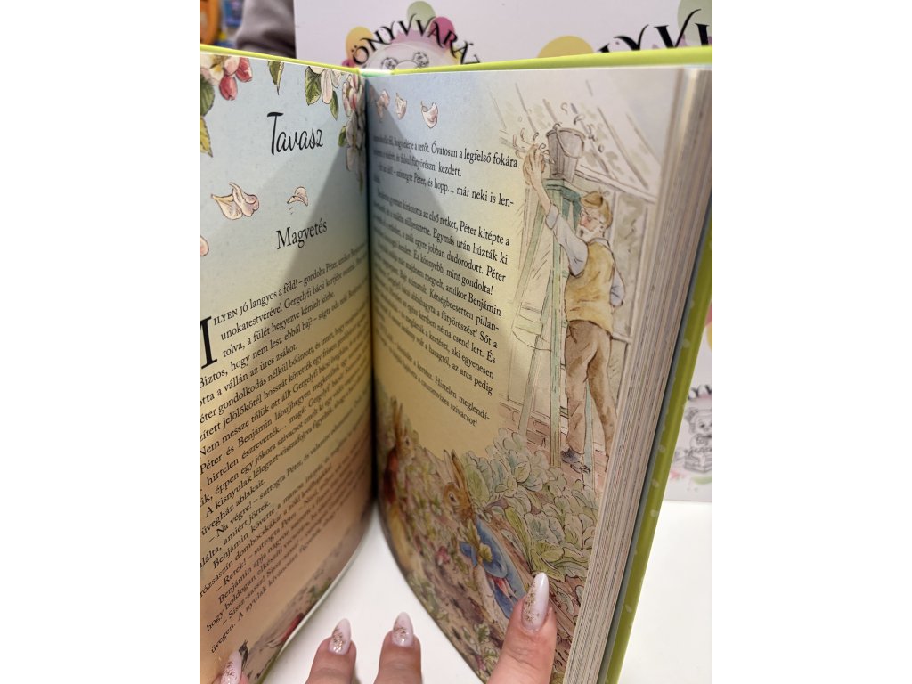 Nyúl Péter ámuló örömmel figyeli az évszakokat: a tavaszi esőt, a nyári verőfényt, az őszi szelet és a téli havazást. Annyi érdekes dolog történik erdőn-mezőn: kisbárányok születnek, beérik a szeder, és korcsolyázni is csoda jó mulatság! Ez a szívmelengető könyv tele van nyulas kalandokkal, és minden mesét játékos feladatok kísérnek.