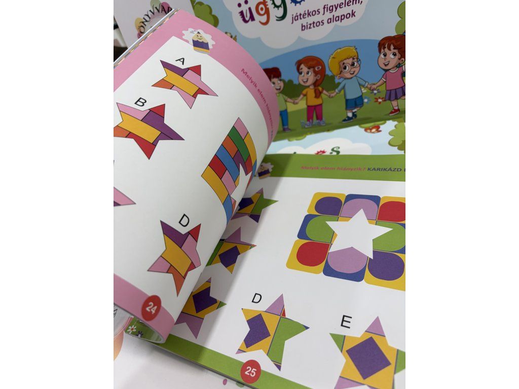 Foglalkoztatónk a játékos, színes feladataival elsősorban a megfigyelőképességet fejleszti. A gyerekek észrevétlenül tanulnak meg figyelni a részletekre, különbségeket és azonosságokat felismerni, miközben örömmel oldják meg a feladatokat.
